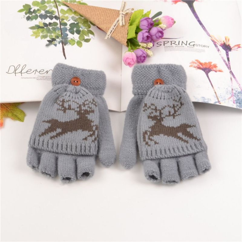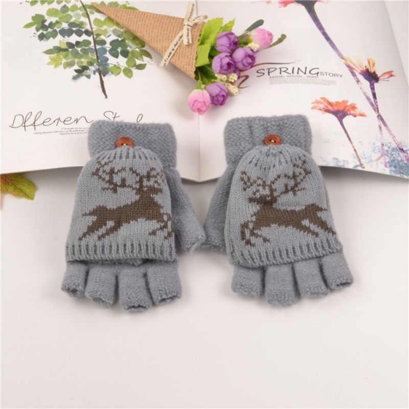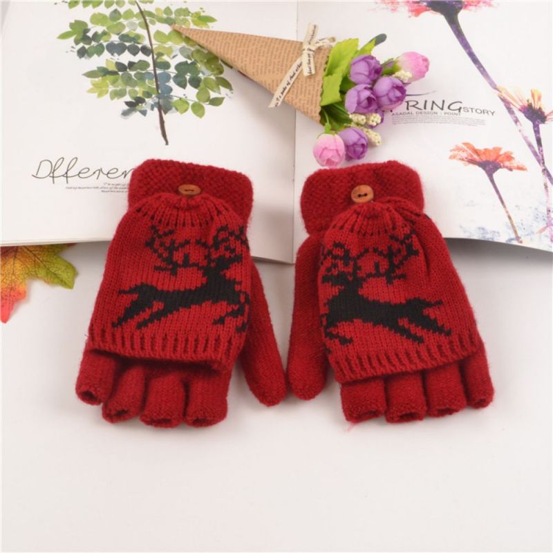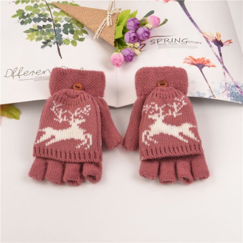 Gloves Female Adult Winter Fingerless Flip Fawn Half Finger Warm Knitted Gloves