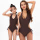 Halter Neck Lace Swimsuit Brown Sexy Bikini