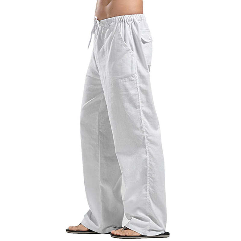 Holiday Cotton Linen Casual Trousers Drawstring Men Linen Men's Clothes