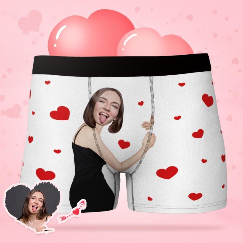 Men's Custom Face Boxers Hug My Dear with Heart