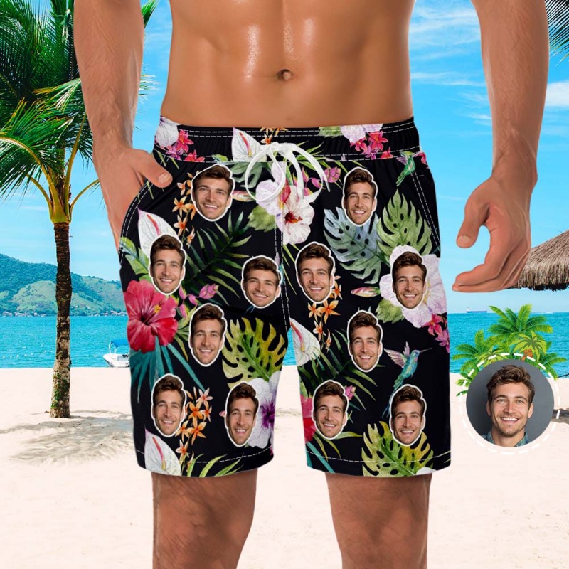 Men's Custom Face Beach Trunks All Over Print Photo Shorts - Street Style