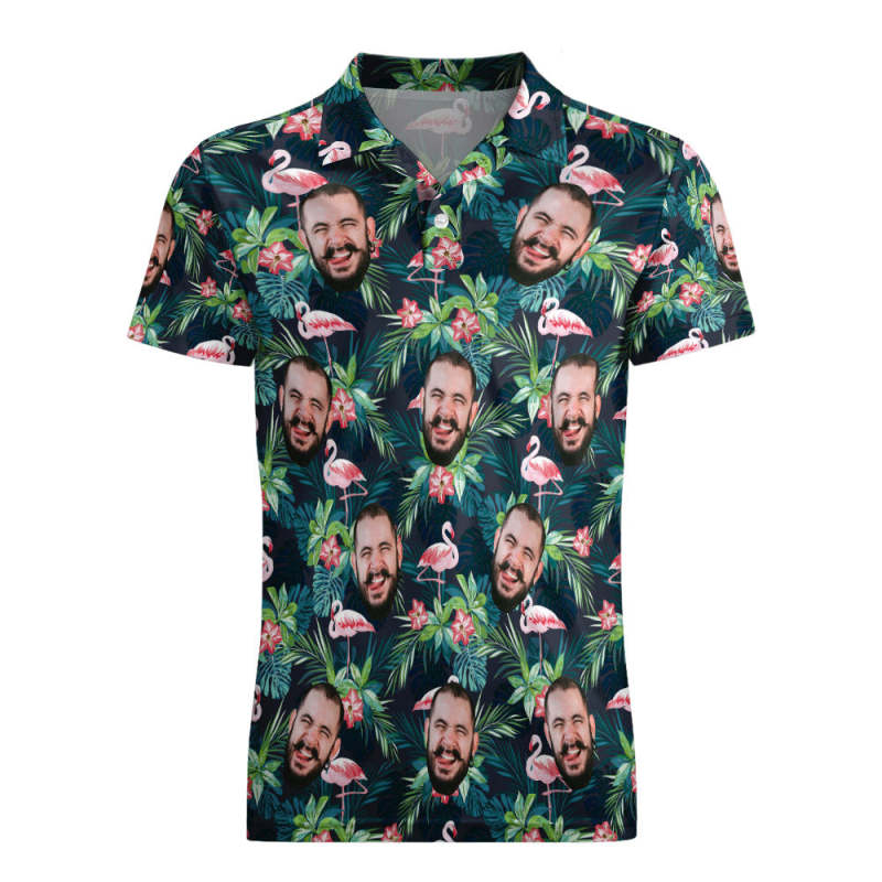Men's Custom Face POLO Shirt Personalised Golf Shirts For Him Flamingo Flower