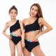 One Piece Bikini Slanted Shoulder Rainbow Edge Parent-Child Swimsuit