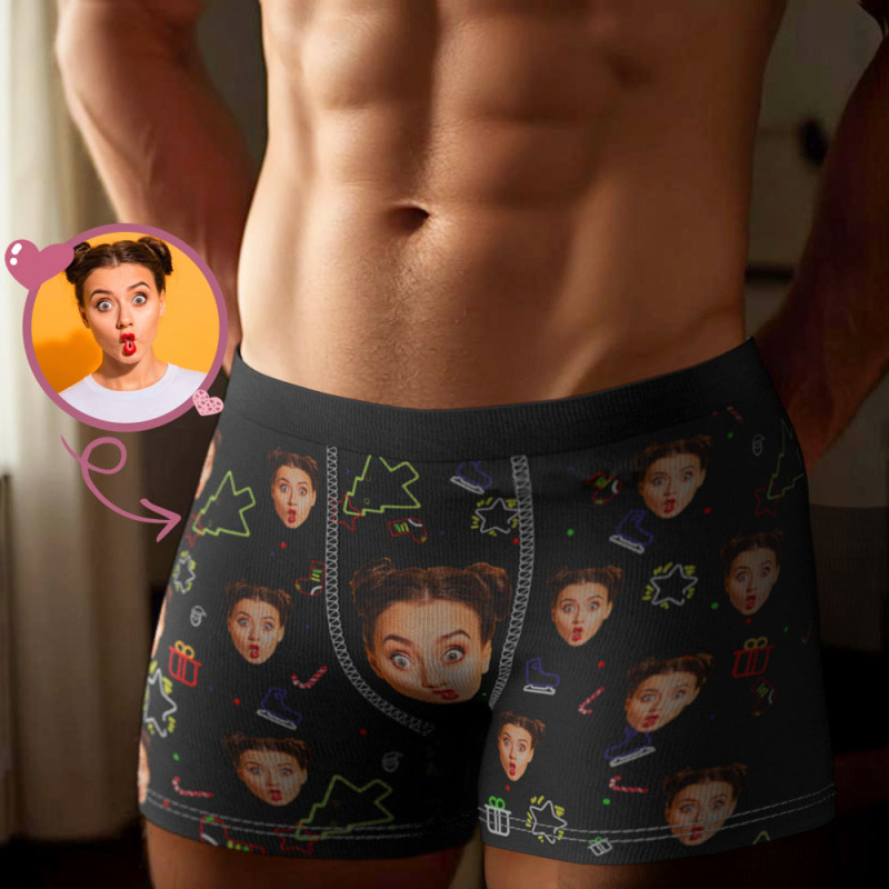 Personalized Face Boxer Shorts Men's Face Underwear Christmas Fluorescent Pattern Underwear Gift