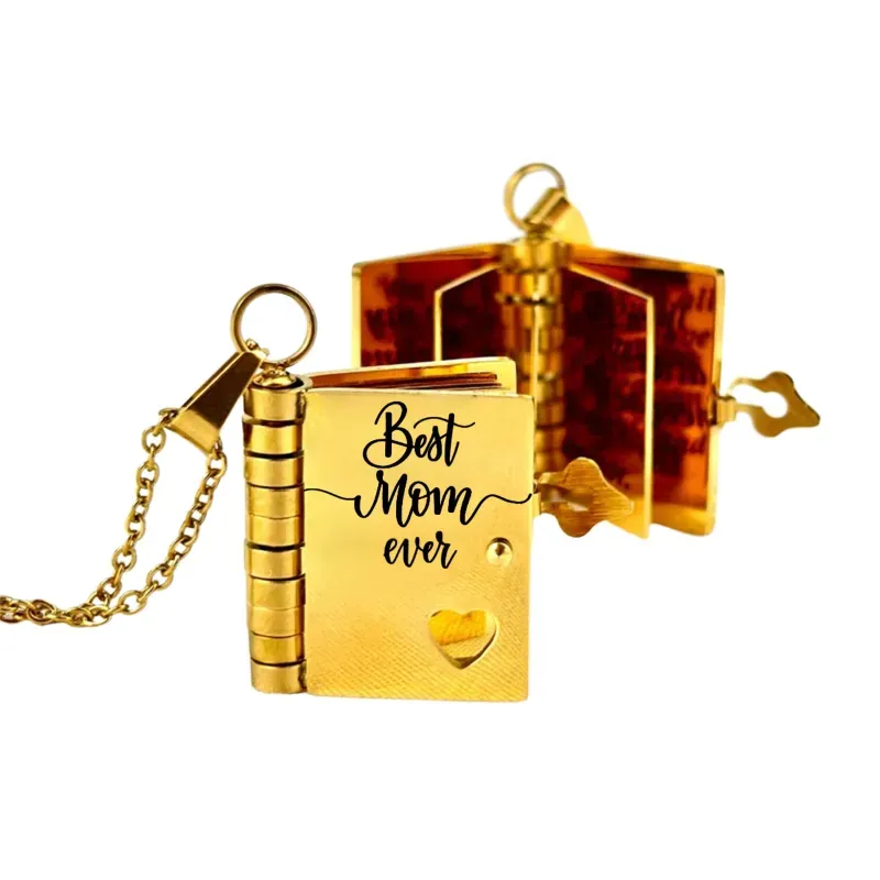 Personalized Mom Necklace for Women - Heartfelt Message Jewelry for Mom from Daughter Son, Engraved Book Pendant, Mother's Day Gift
