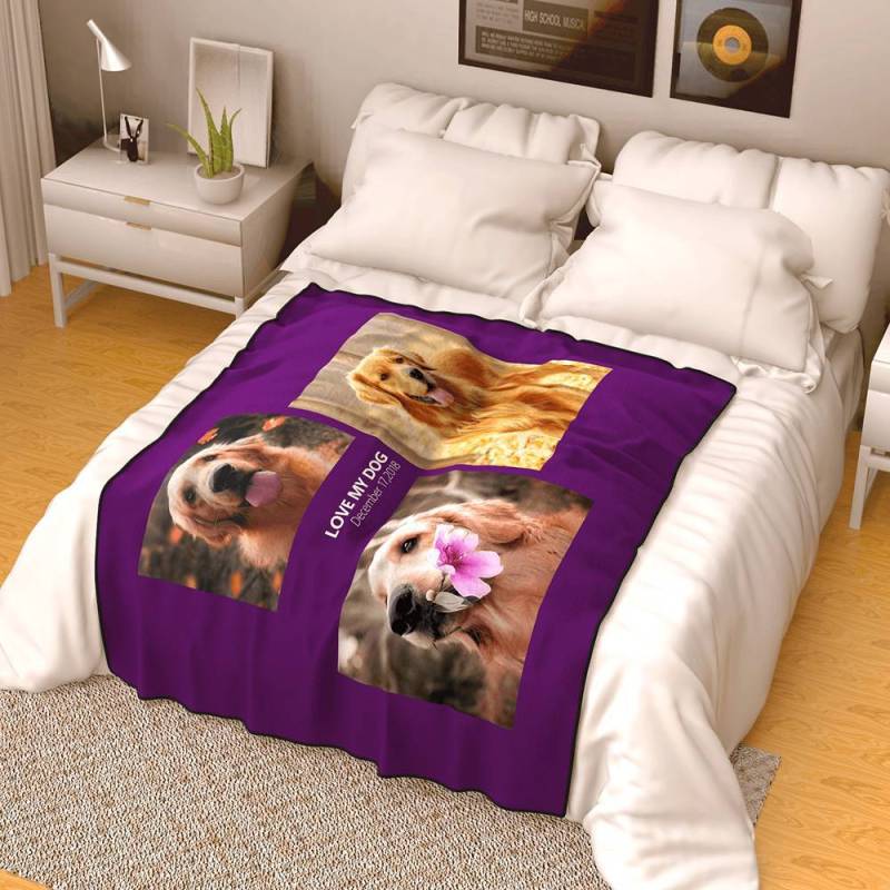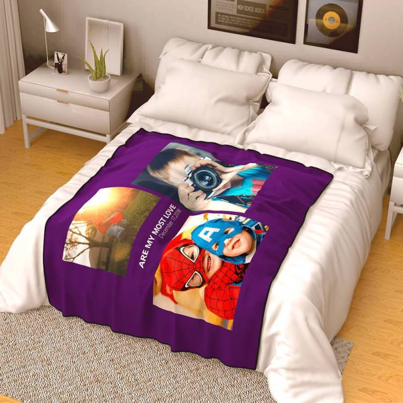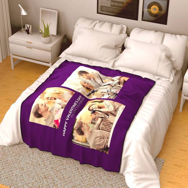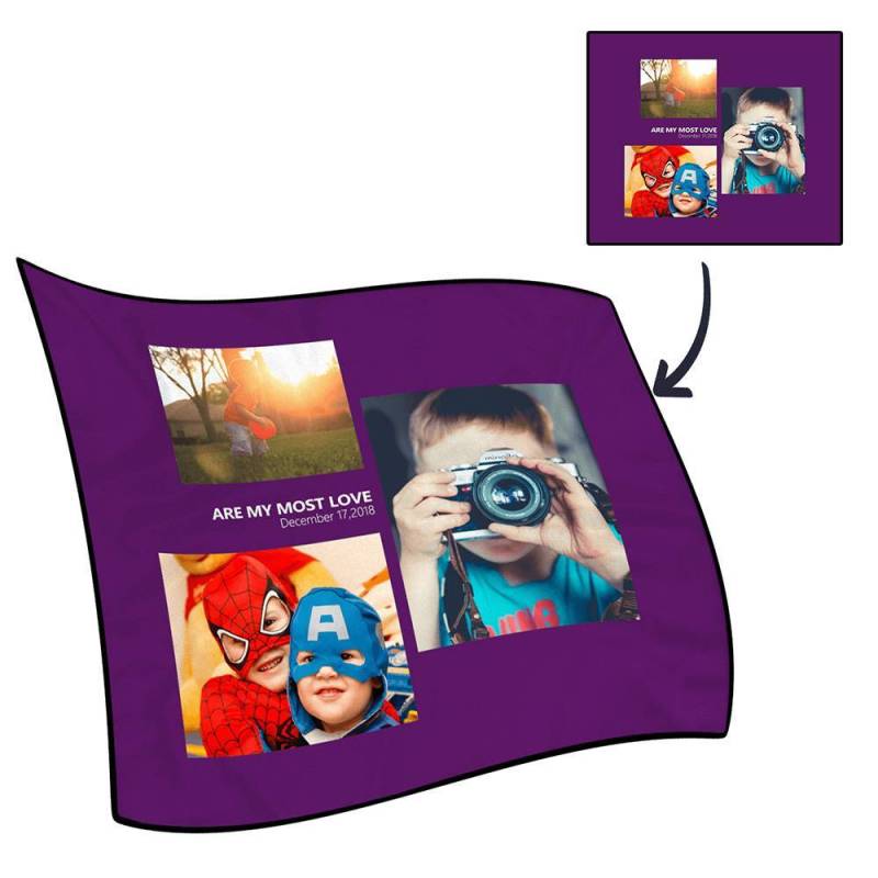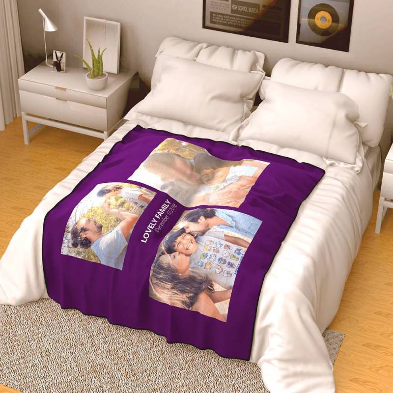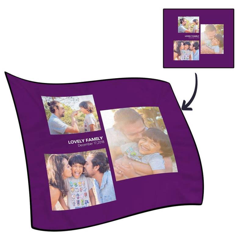 Personalised Famliy Photo Fleece Blanket with Text - 3 Photos