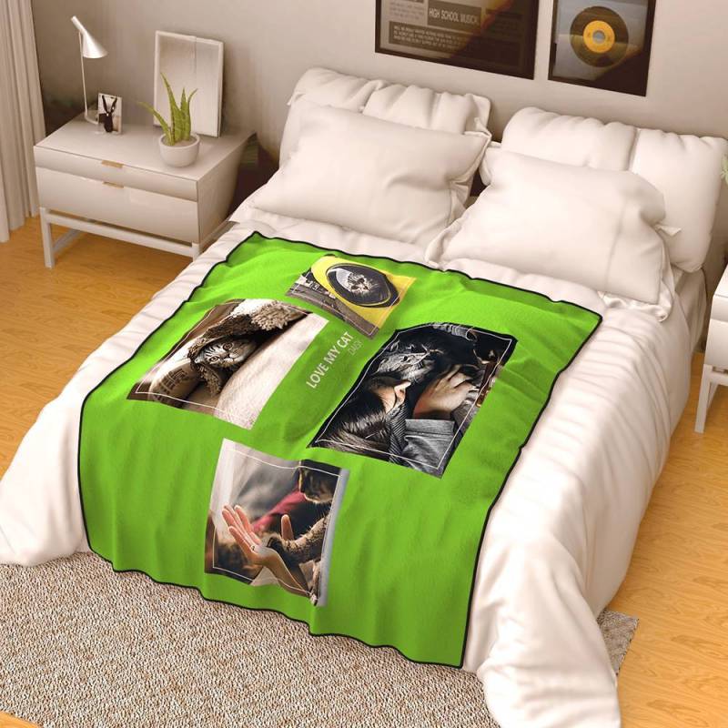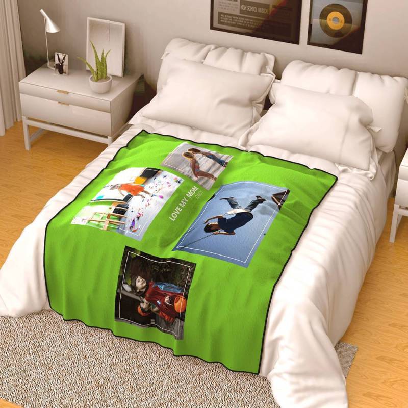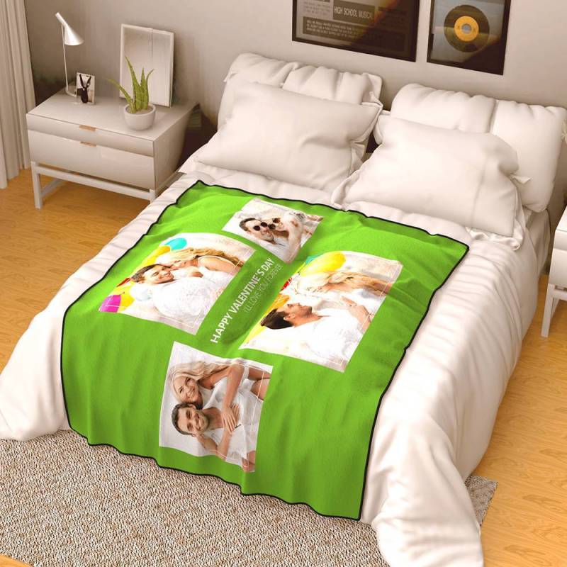 Personalised Famliy Photo Fleece Blanket with Text - 4 Photos