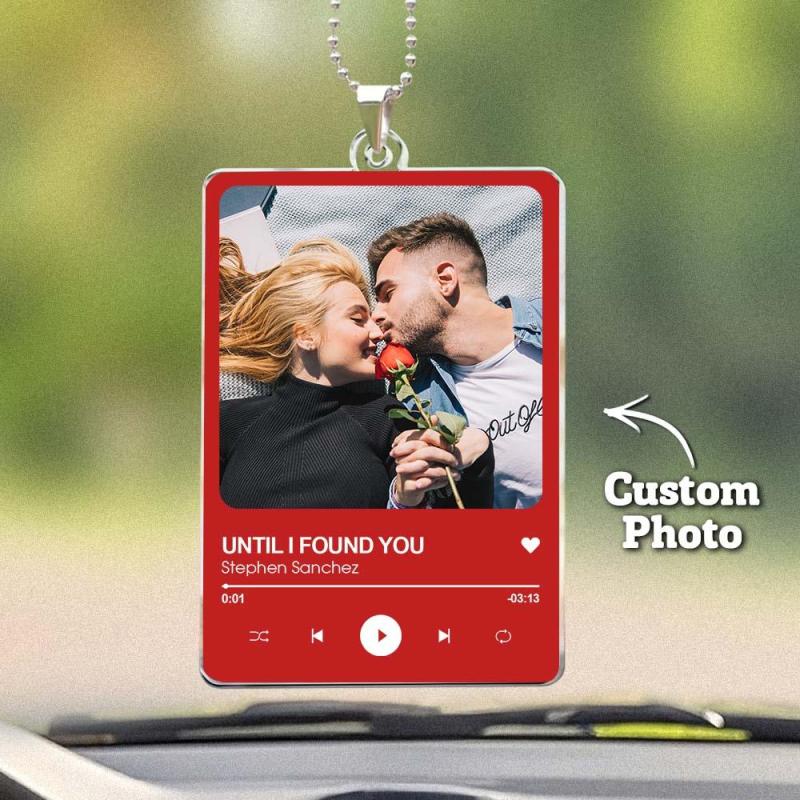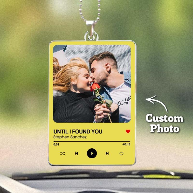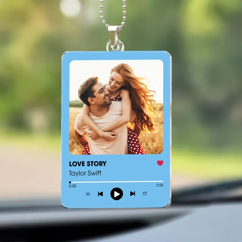 Personalized Photo Rear View Mirror Accessory Favorite Song Title