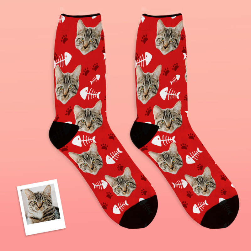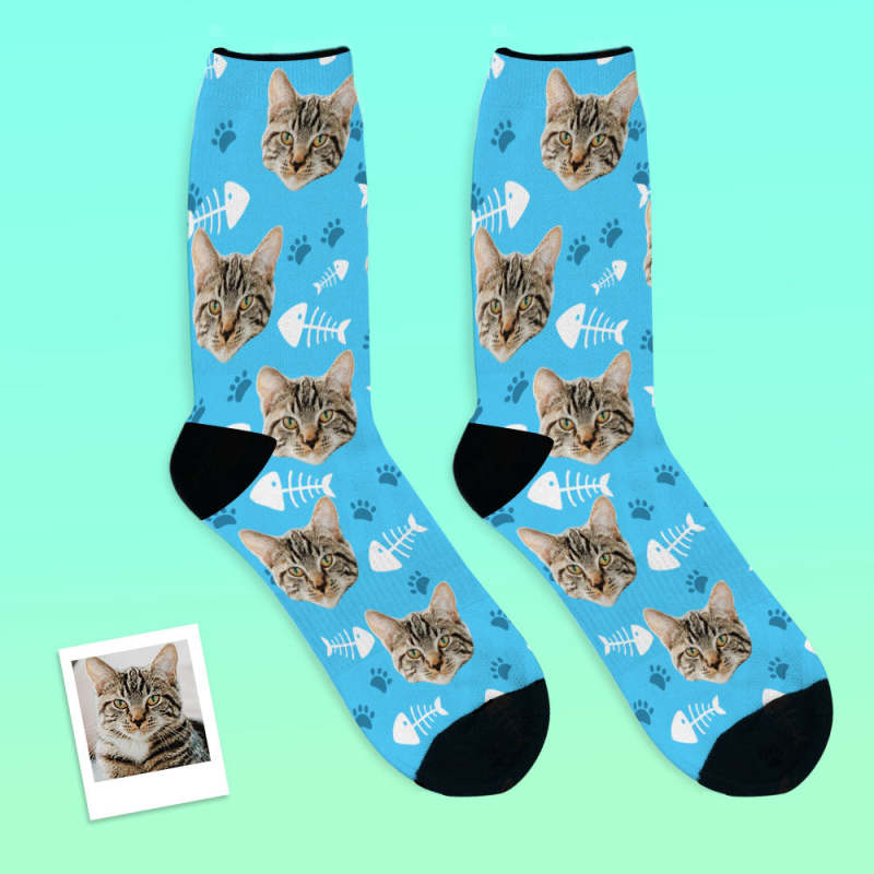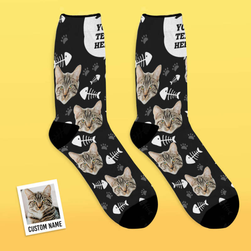 Custom Face Socks Add Pictures and Name - Cat