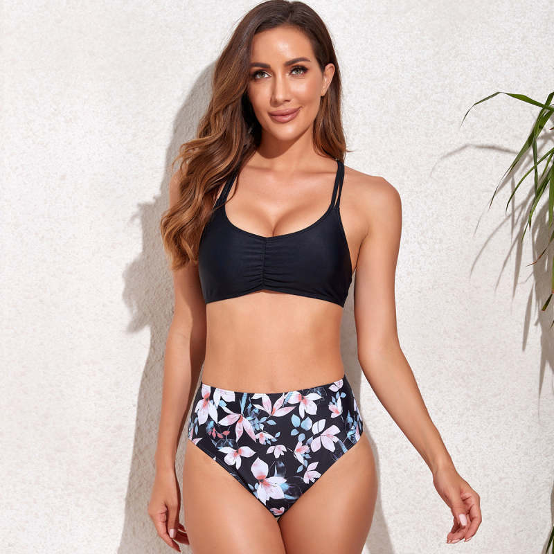 Pleated Bikini Sexy High Waist Printed Split Swimsuit Women