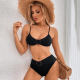 Split Solid Color Bikini Sling Halter Briefs Women's Seaside Swimwear