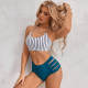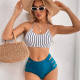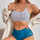 Striped Split Bikini Suspenders Backless Straps Swimsuit