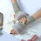 Winter Stretch Women's Fleece Knitted Half Finger Triangle Block Short Gloves