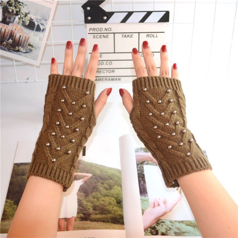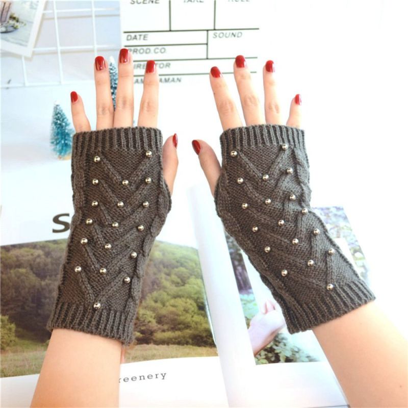 Winter Warm Half Finger Gloves Eight Character Steel Ball Adult Ladies Knitted Gloves