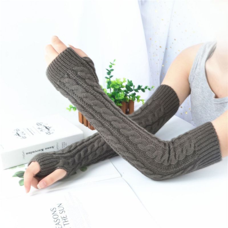 Winter Wool Long Fingerless Gloves Ladies Warm Knit Fingerless Sleeves