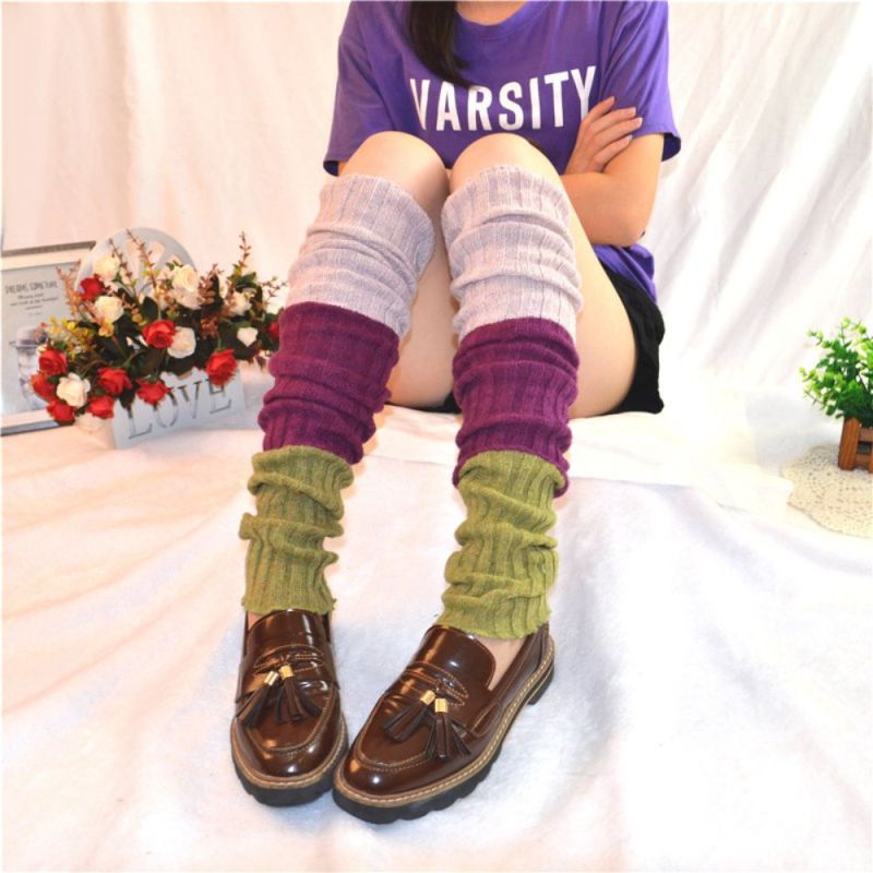 Winter Wool Over-The-Knee Socks Sock Set Contrast Color Women'S Wool Leg Set Lengthened Knitted High Socks