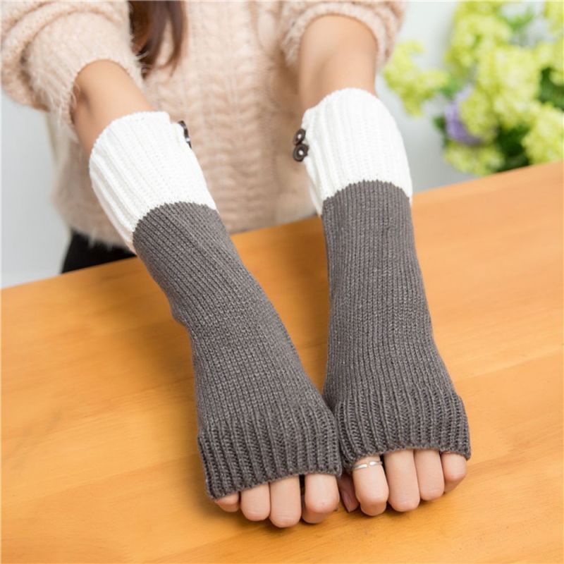 Women's Half Finger Gloves Colorblock Winter Warm Arm Cover